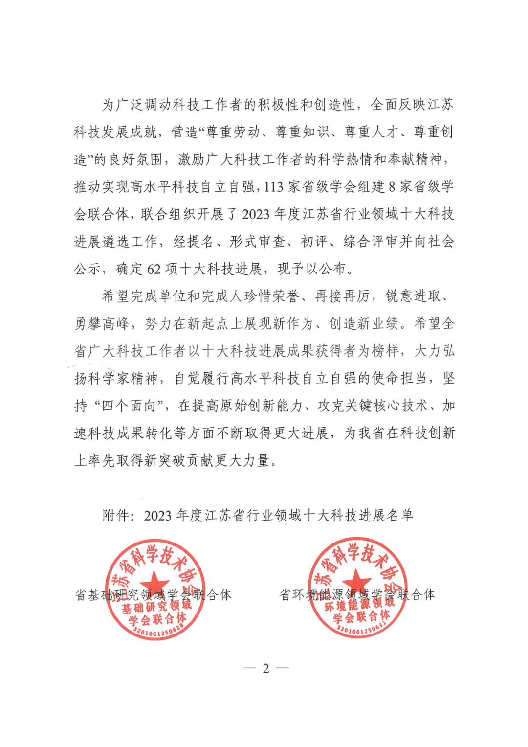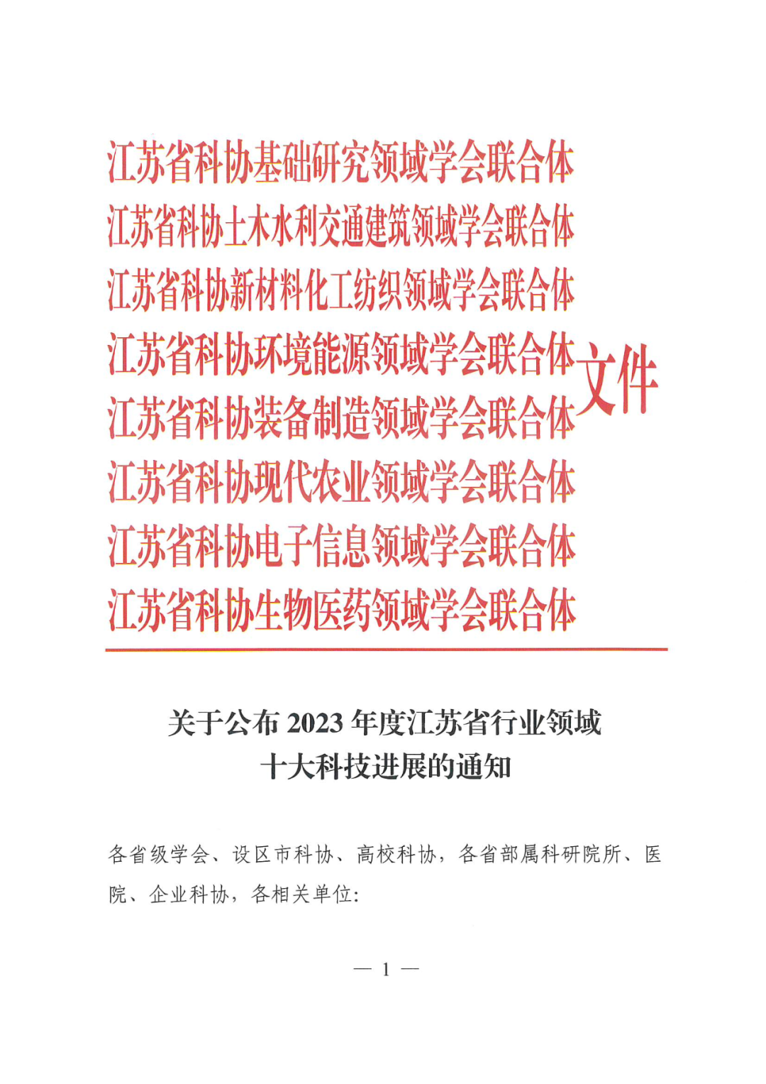 关于公布2023年度江苏省行业领域十大科技进展的通知.pdf