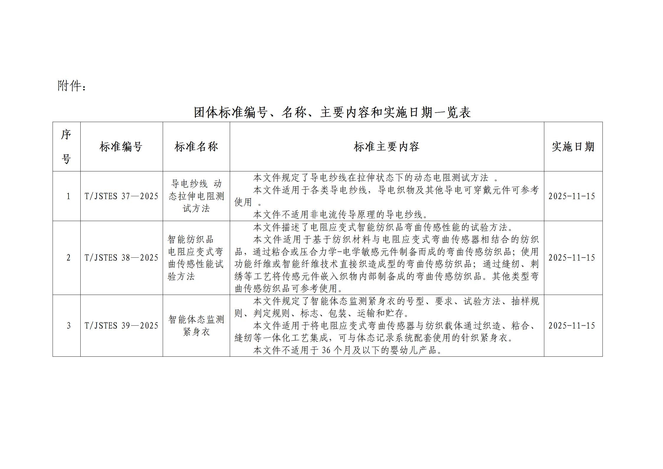关于批准发布《导电纱线 动态拉伸电阻测试方法》等3项团体标准的公告