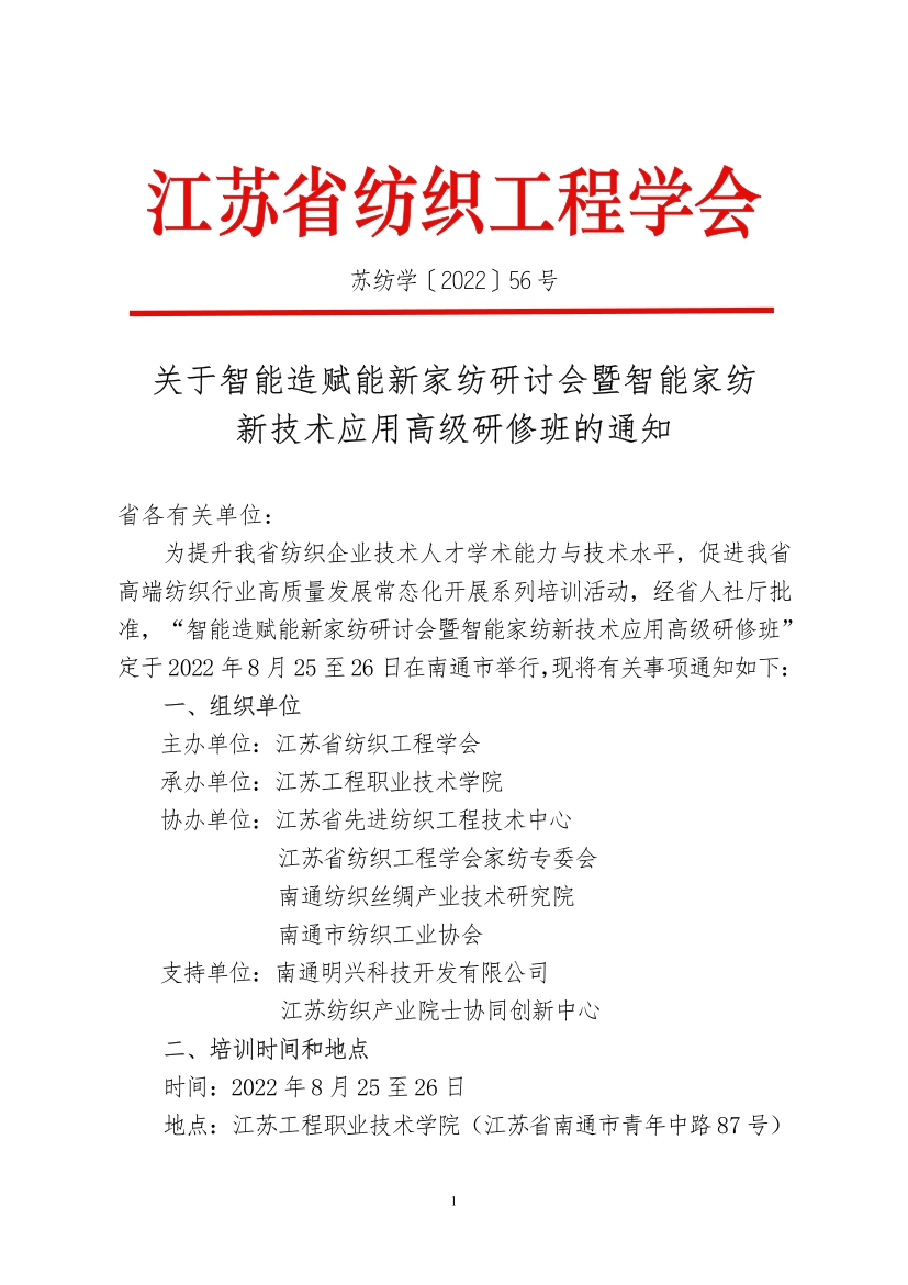 关于智能造赋能新家纺研讨会暨智能家纺新技术应用高级研修班的通知